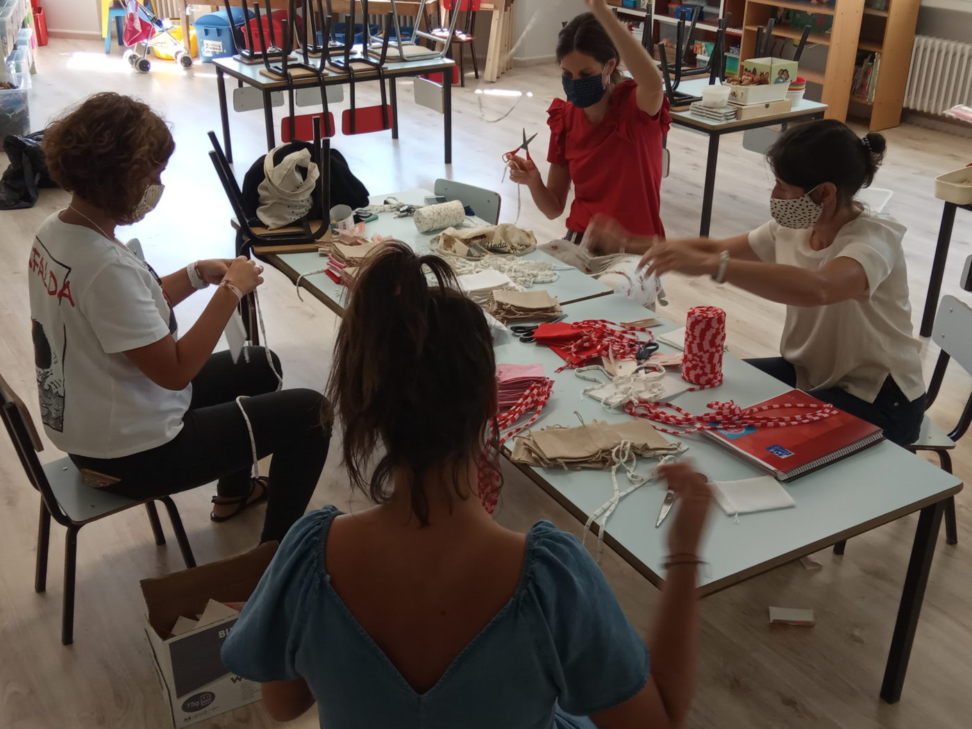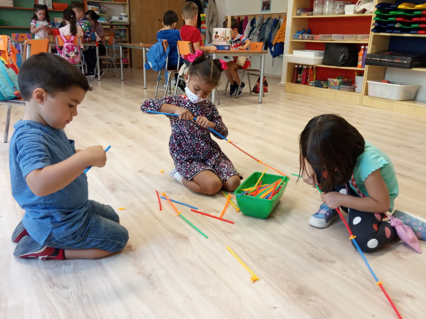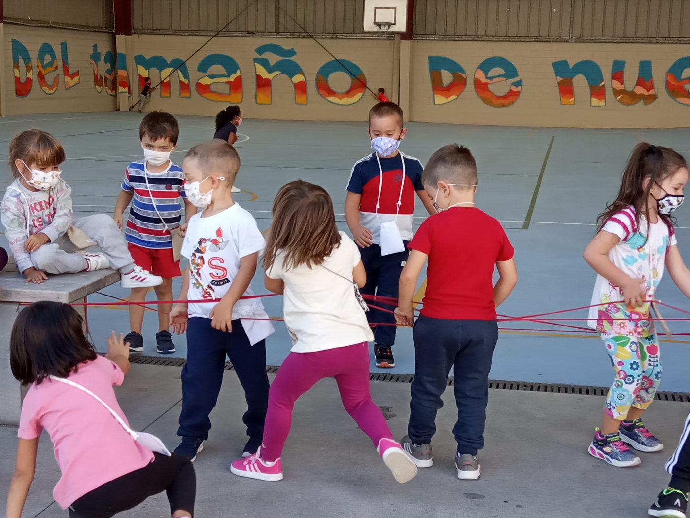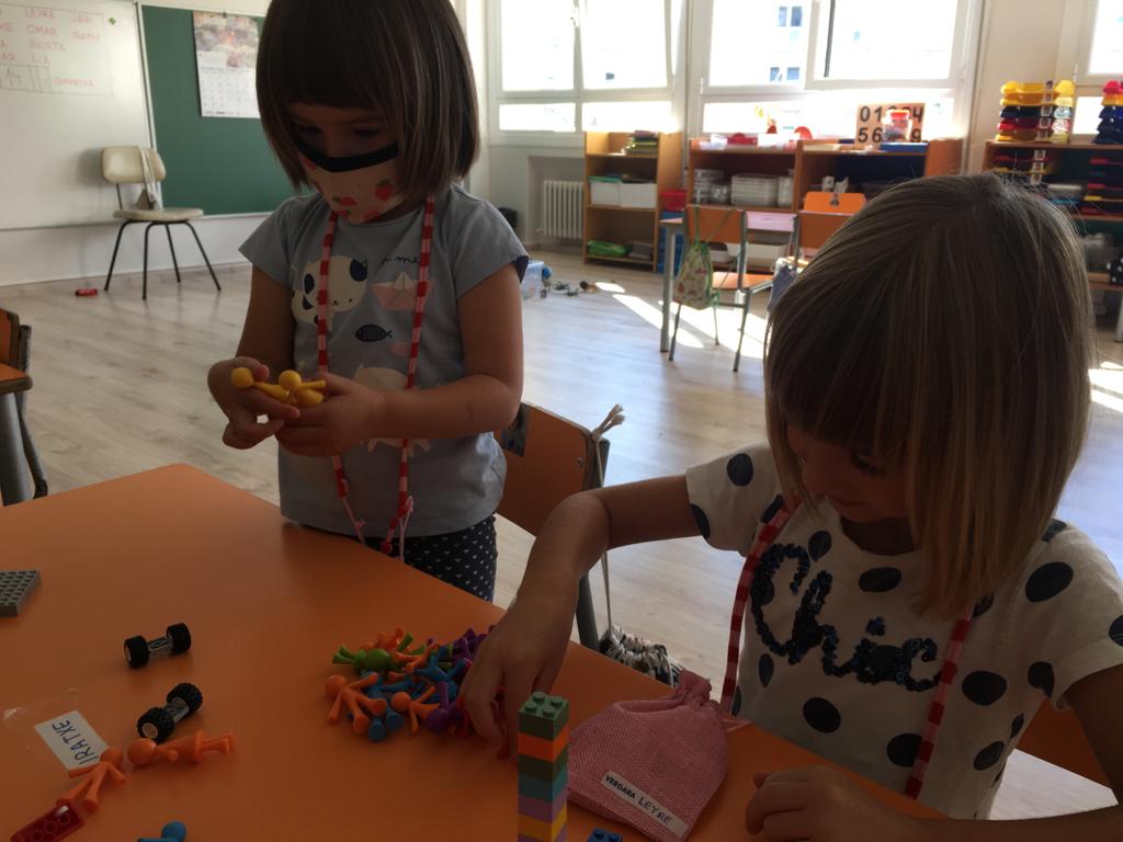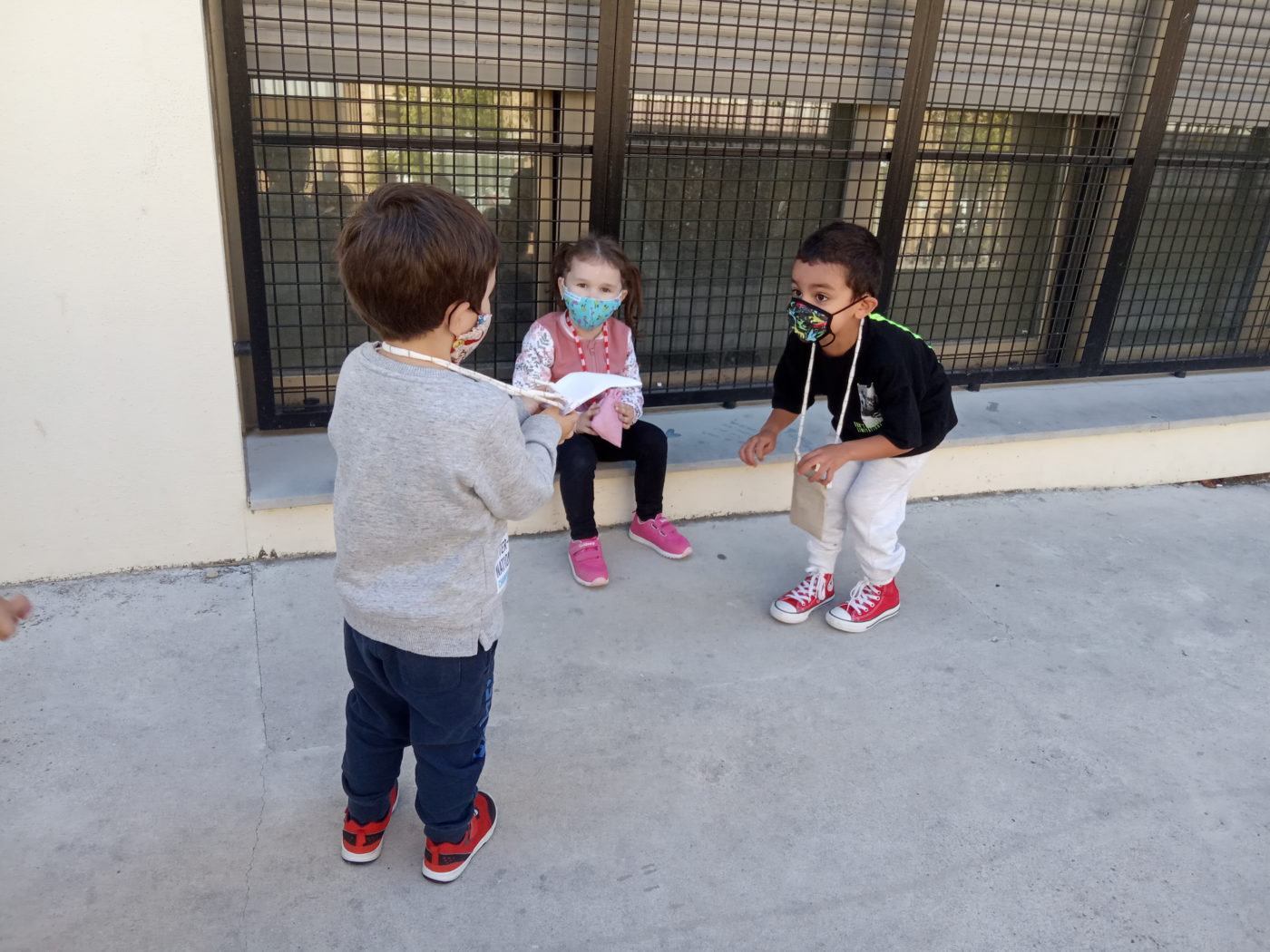 En estos tres días que llevamos, ya sabemos en qué momentos tenemos que llevar mascarilla y en cuáles no, y gracias a las bolsitas tan chulas que nos han preparado nuestras profes, la guardamos de forma segura para que no se pierda.