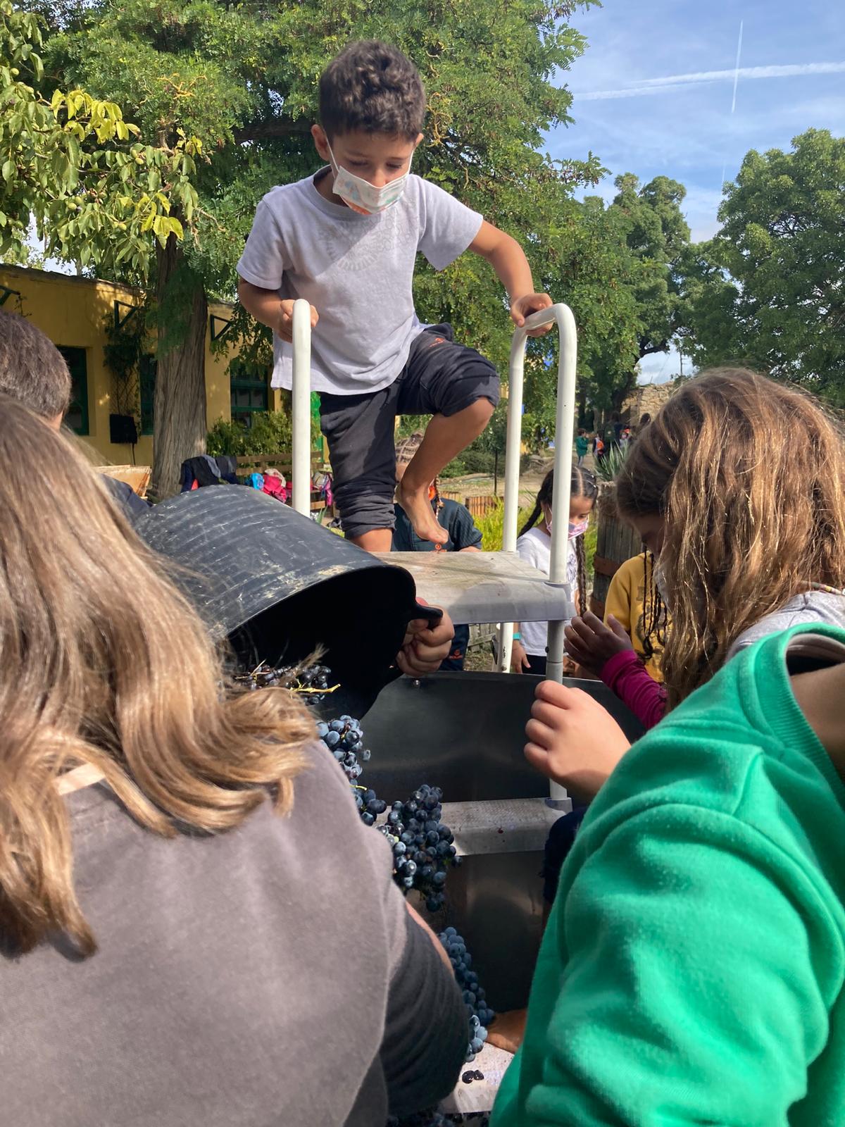 Los chicos y chicas de 1º y 2º de E.P hemos ido a Beire a elaborar nuestro propio mosto. Para ello hemos recolectado la uva directamente del campo, la hemos cargado en cubos, la hemos estrujado,  prensado, cocido… y hasta hemos diseñado la etiqueta de la botella de nuestro mosto que nos hemos llevado  a casa.