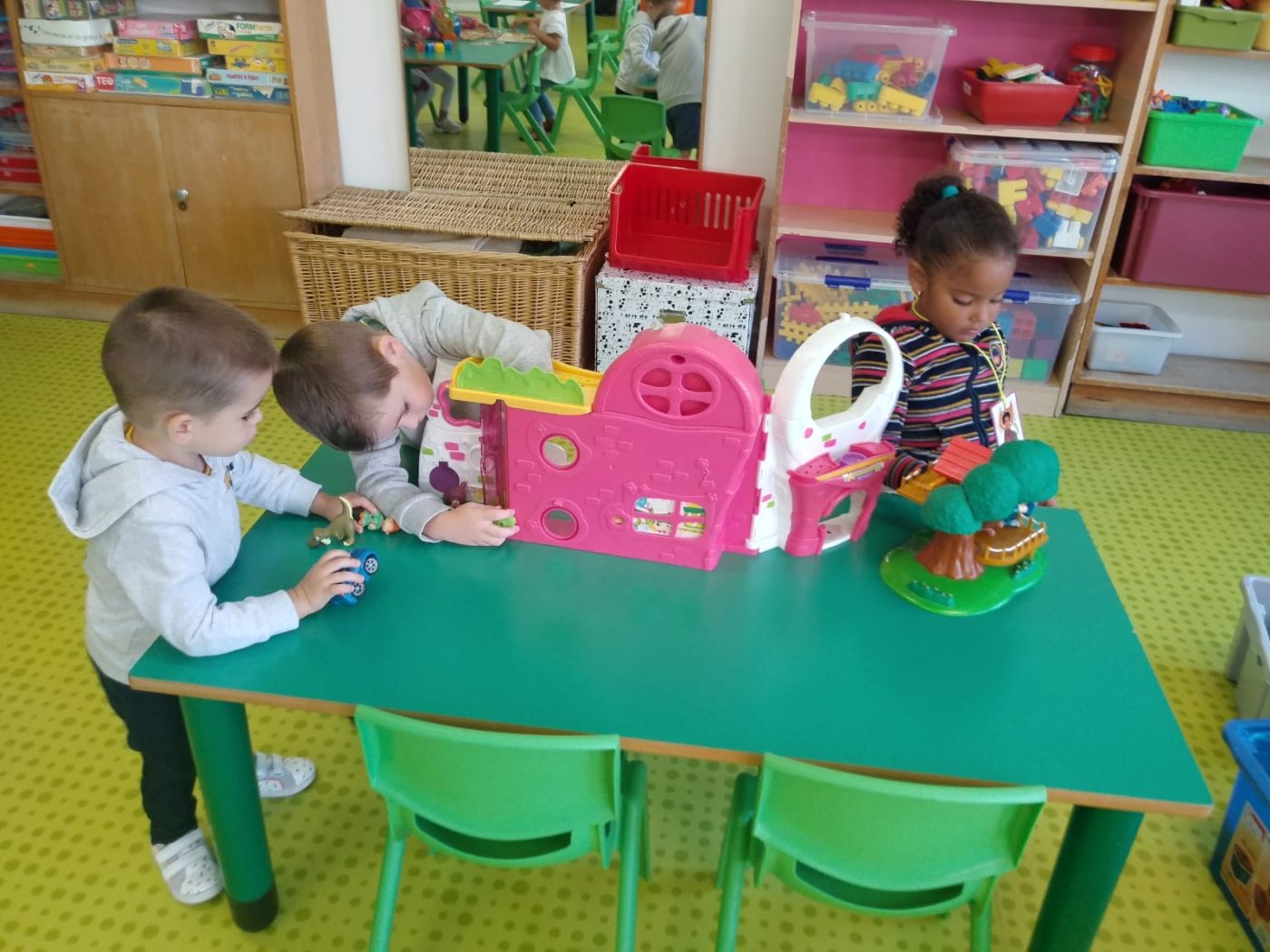 ¡Jugamos un montón! Nos divertimos, bailamos, nos disfrazamos, jugamos con arena, con casitas y muchas cosas más.