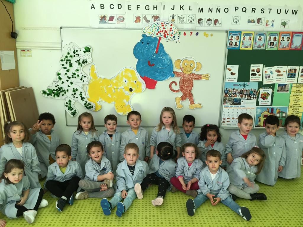 Los niños de 1º hemos conocido a los amigos de Spot, Helen, Tom y Steve. Hemos escuchado historias de él y sus amigos, y nos hemos dado cuenta de que… ¡Sorpresa! Spot y sus amigos también van al cole ¡como nosotros!