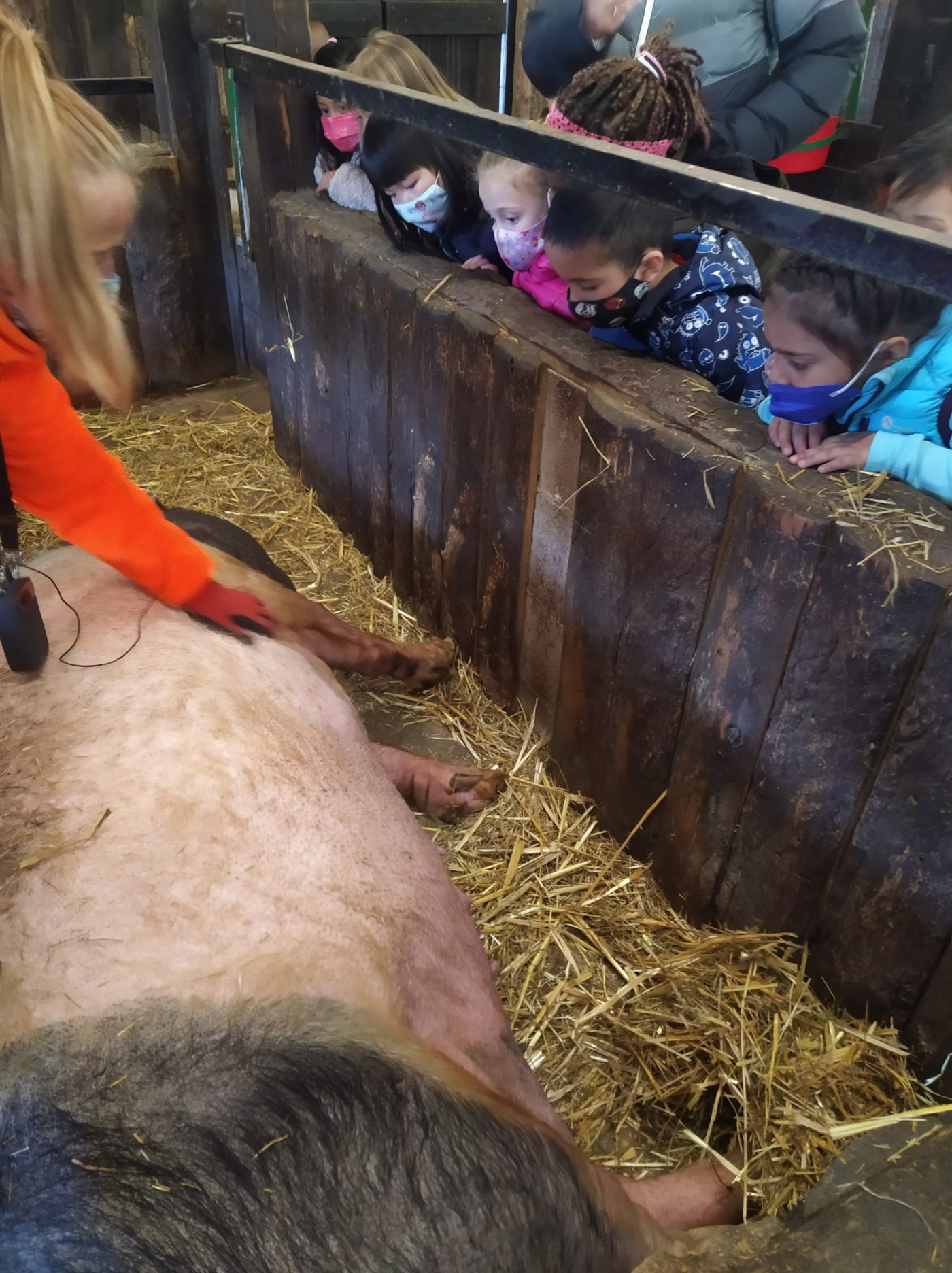 Hemos visto muchoS animales (vacas, ovejas, cabras, cerdos, gallinas, conejos…), les hemos podido tocar e incluso les hemos dado de comer.