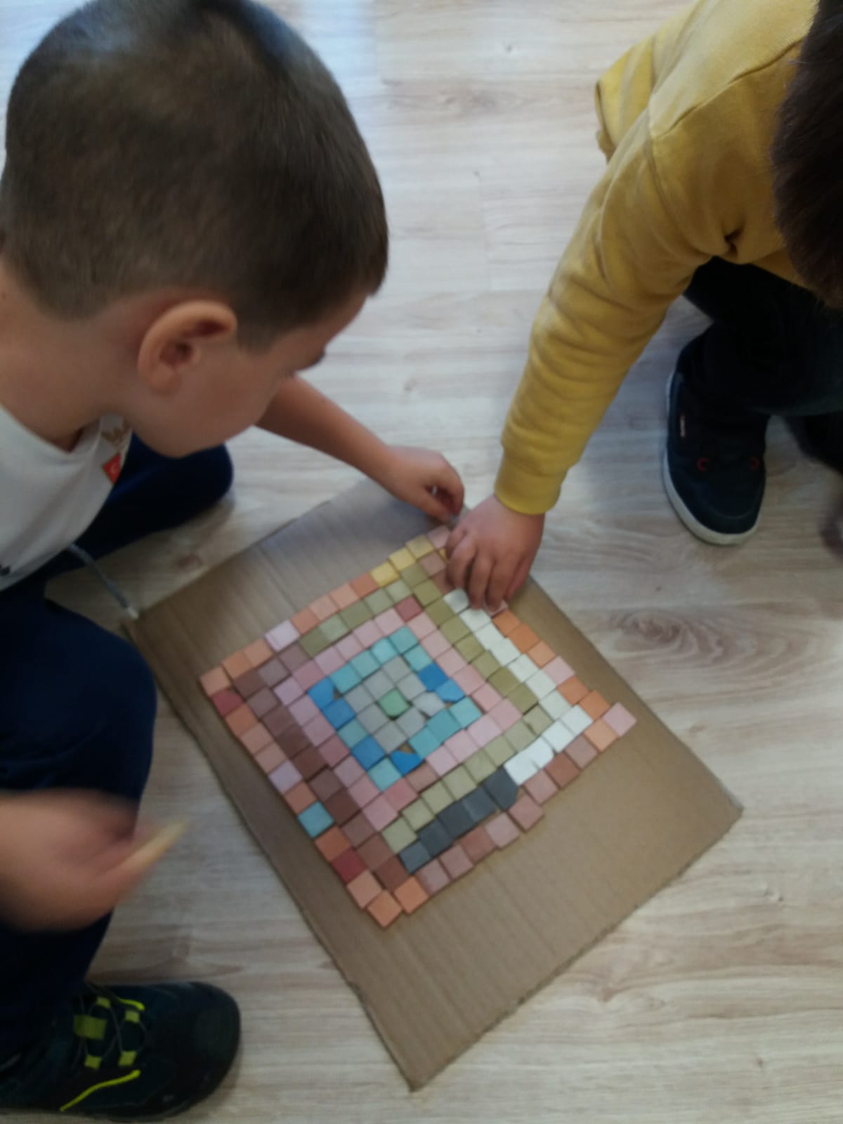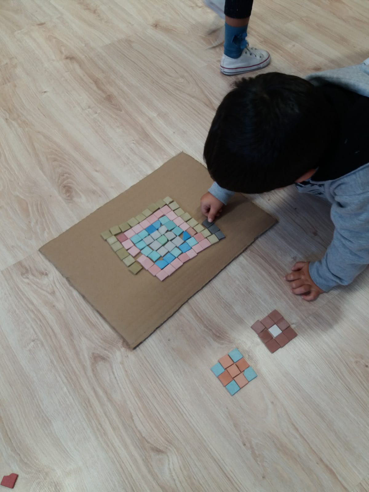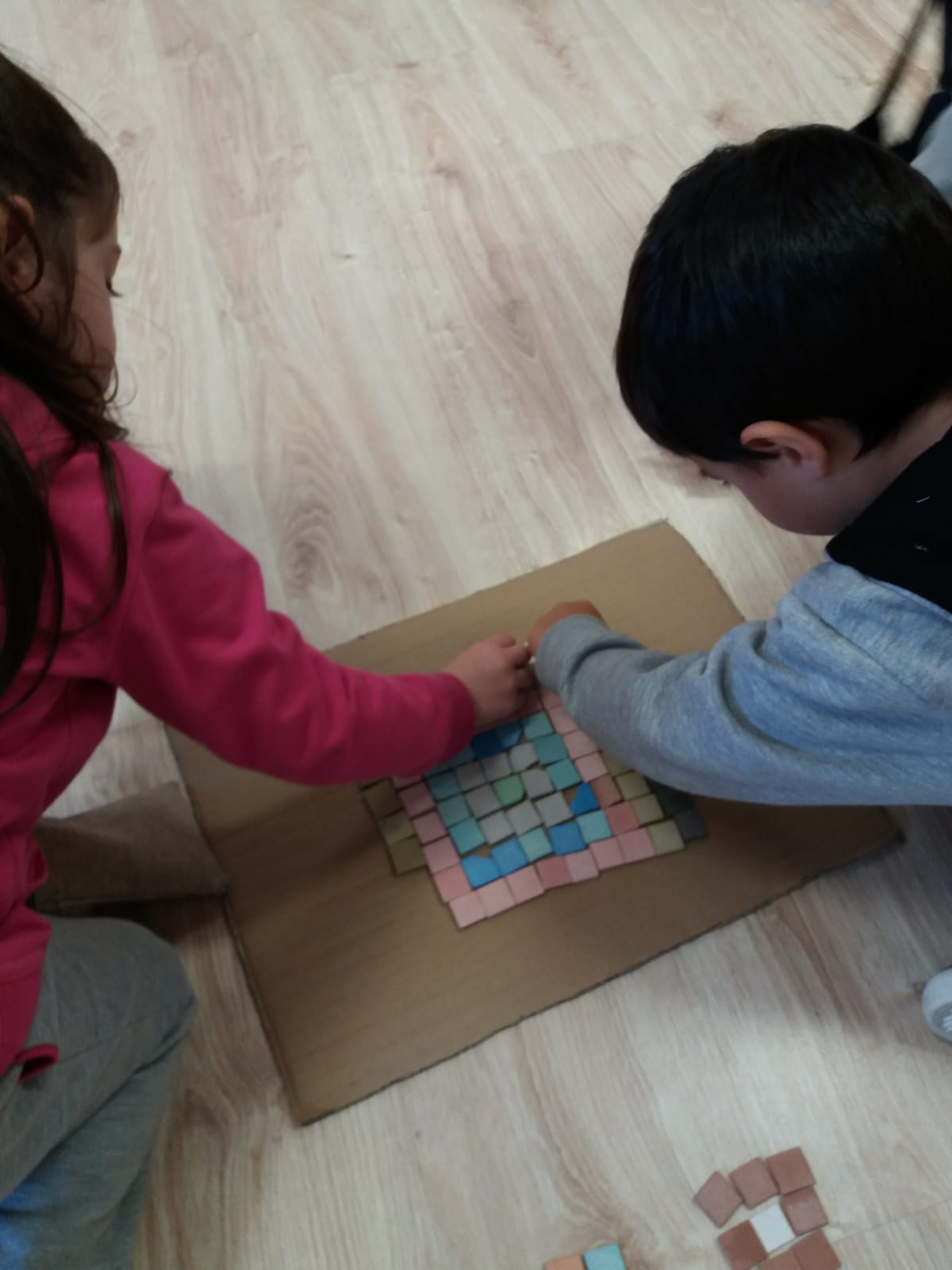 Ahora, en el cole, seguimos con ganas de saber más sobre esos mosaicos, las formas, colores… seguiremos investigando y en casa os contaremos cosas sobre los mosaicos que quizás no conocíais.